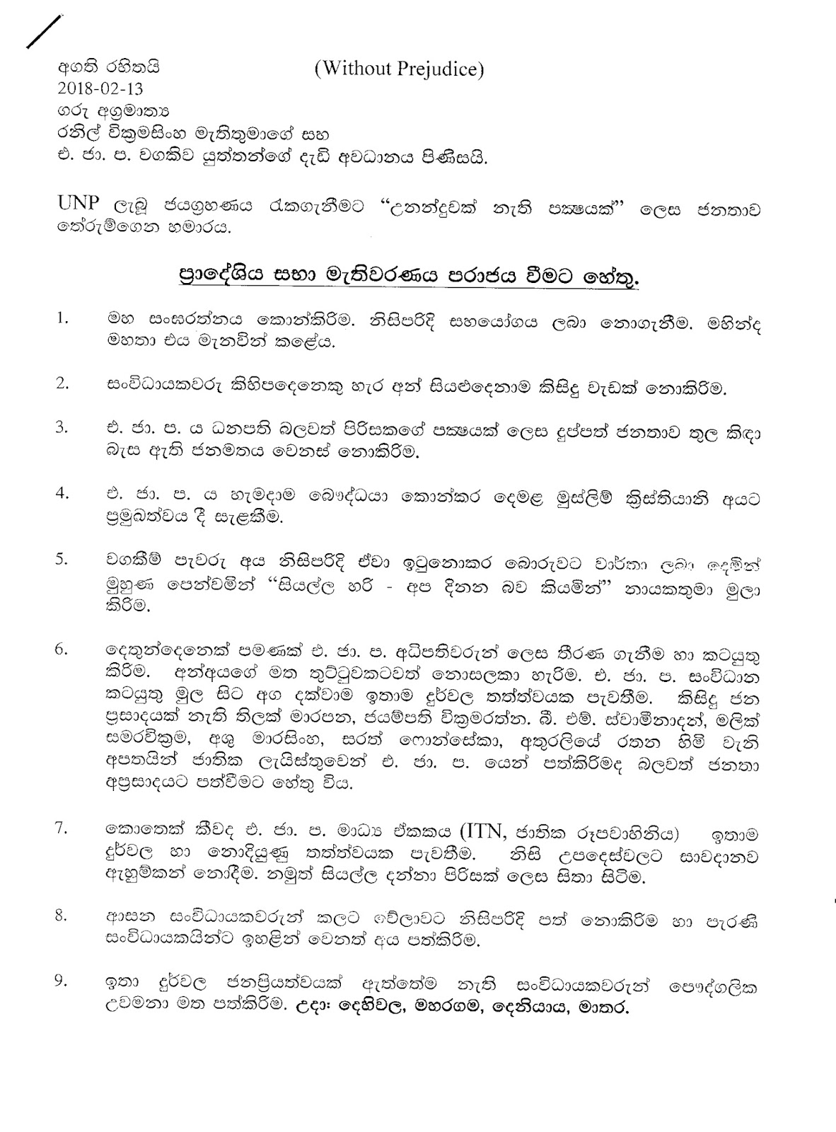 You are here:Homeඑජාපය පසුබැස්සේ ඇයි? පාක්ෂිකයෙකුගෙන් එජාප නායකයා නිරුවත් වන ලිපියක්.
