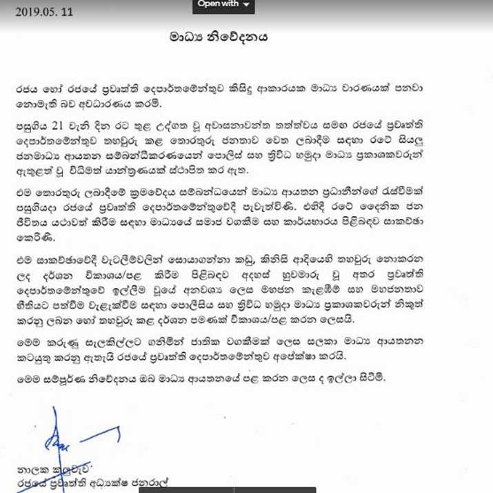 You are here:Homeකිසිම මාධ්ය වාරණයක් පනවා නෑ – රජය කියයි