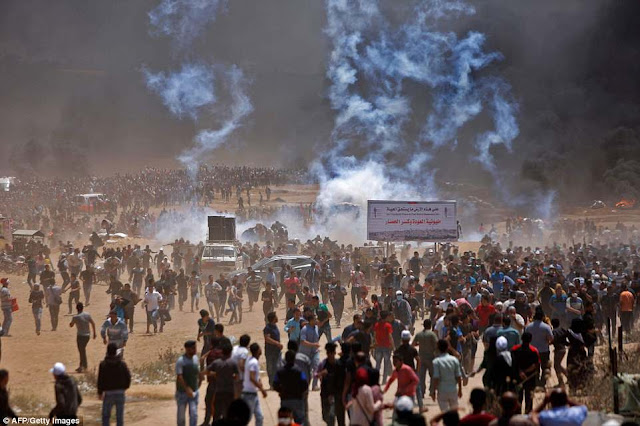 ඒ අනුව මේ සඳහා විරෝධය පලකරමින් සිටි පලස්තීනුවන්ට ඩ්රෝනා යත්රා මගින් කඳුලු ගෑස් එල්ල කිරීමටද කටයුතු කර තිබුනා. දෙවන ලෝක යුද්ධය සිහිපත් කරමින් ඇතිවුනු මෙම දරුණු තත්වයේ වීඩියෝ සහ ඡායාරූප මේ වන විට ජාත්යන්තර මාධ්ය වාර්තා කරමින් පවතිනවා.