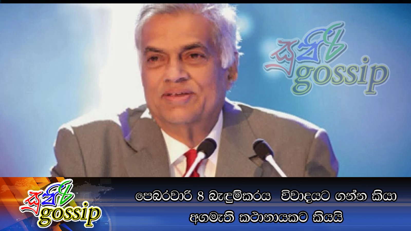 බැඳුම්කර සිදුවීම සම්බන්ධයෙන් පාර්ලිමේන්තුවේ විවාද කිහිපයක් පැවින් අලුත් දෙයක් නොවන නිසා බැඳුම්කර වාර්තාව හා බරපතල වංචා පිළිබඳ වාර්තාව සම්බන්ධයෙන් වන විවාදයක් සඳහා පාර්ලිමේන්තුව පෙබරවාරි 08දා කැඳවන ලෙසට තමන් කතානායක කරු ජයසූරිය මහතාට දැනුම් දුන් බව ඊයේ (27) දෙනියායේ පැවැති මැතිවරණ රැළියක් අමතමින් අග්රාමාත්ය රනිල් වික්රමසිංහ මහතා පවසා ඇත.