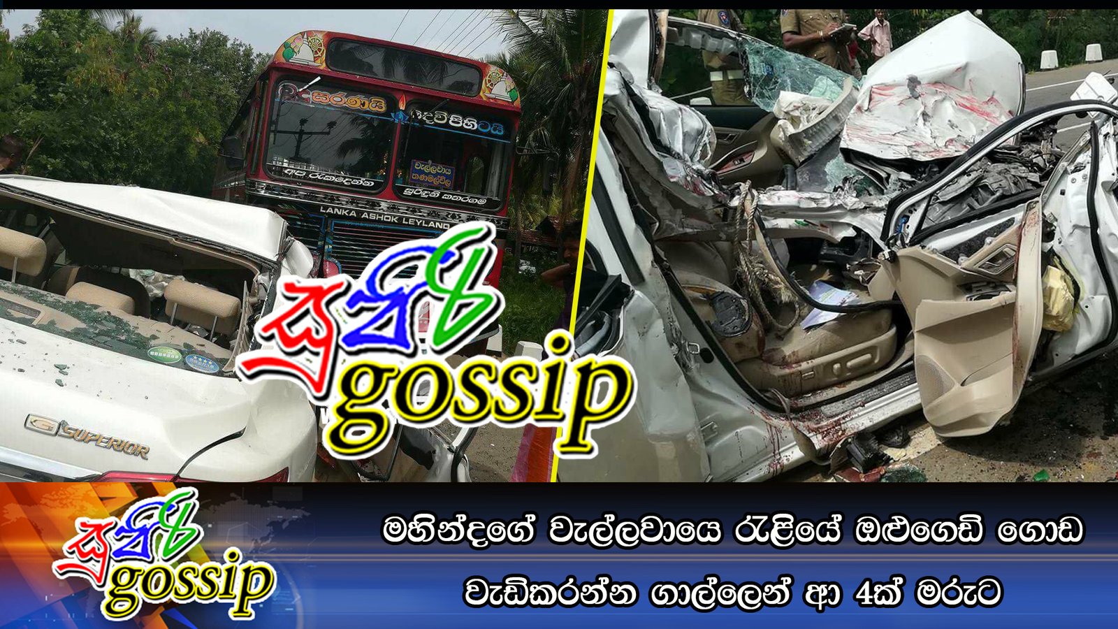 පෙරේදා (27) වැල්ලවාය නගරයේ පැවැති මහින්ද රාඡපක්ෂ මහතා පැමිණෙන ජනහමුවකට සහභාගී වීමට පැමිණි, ගාල්ල ප්රදේශයේ පදිංචි පිරිසක් රැගත් තණමල්විල සිට ධාවනය වූ මෝටර් රථයක් වැලල්වාය, තණමල්විල මාර්ගයේ 38 කණුව ආසන්නයේ බදුල්ල සිට තනමල්විල දක්වා ධාවනය වෙමින් තිබූ ලංගම බස් රථයක ගැටීමෙන් මොටර් රථයක ගමන්ගත් සිවුදෙනෙකු මියගොස් ඇති අතර තවත් පස්දෙනෙකු තුවාල ලබා තිබේ.