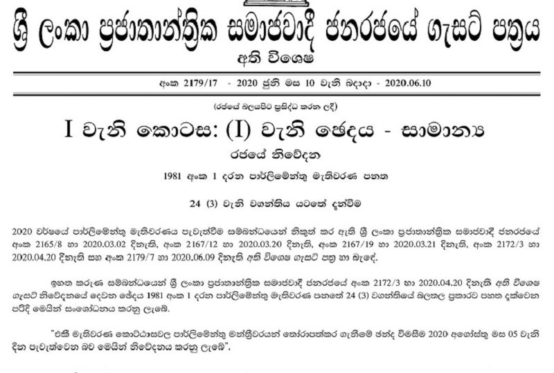 මේ පිළිබද ගැසට් නිවේදනය මුද්රණය කිරීමට යැවූ බව ද ඔහු සදහන් කළ අතර අද දින සවස එය මුද්රණයෙන් පිට කිරීමට රජයේ මුද්රණාලය විිසින් පියවර ගෙන තිබුණි.