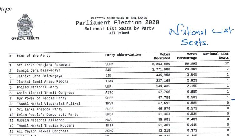 මෙවර මැතිවරණයේ ජාතික ලැයිස්තු ආසනවලට ගනන් හදපු හැටි මෙන්න