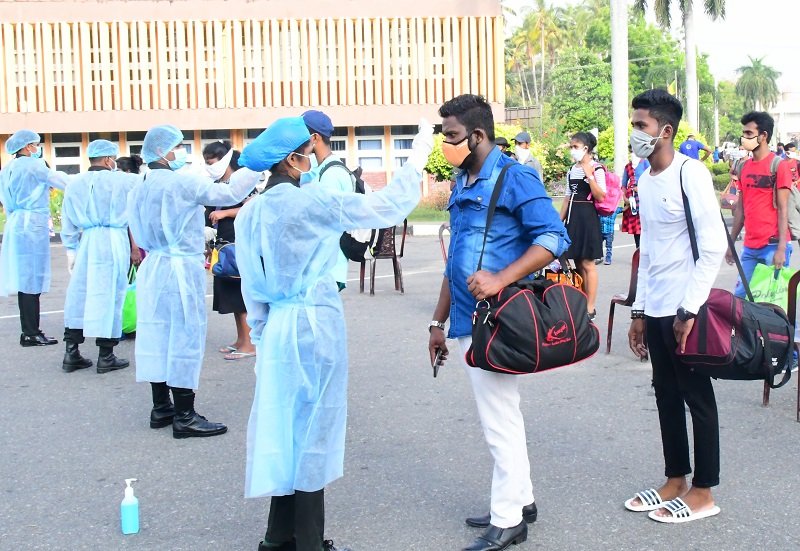 පසුගිය මාර්තු මස අගුළු දැමීම සමග ගම්බිම් බලා පිටත්ව යාමට සැරසෙන නිදහස් වෙළෙද කලාප සේවකයින් පරීක්ෂාවට ලක් කරමින්.